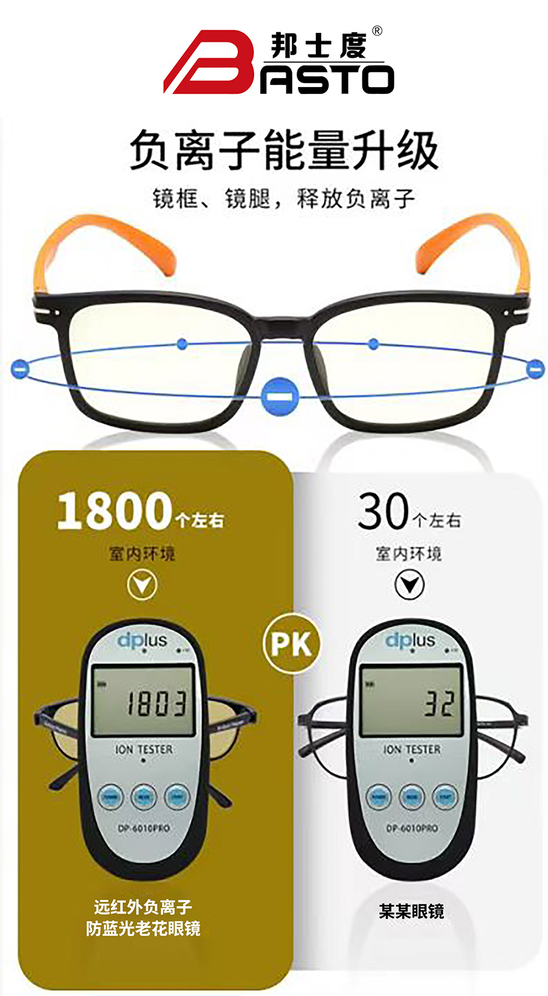 2. 負(fù)離子:實(shí)用專利用天然電氣石《地學(xué)前緣》驗(yàn)證的納米粉體嵌入鏡框特殊納米級(jí)材料與工藝特色,持續(xù)釋放高濃度負(fù)離子,抑制細(xì)菌、緩解視疲勞。